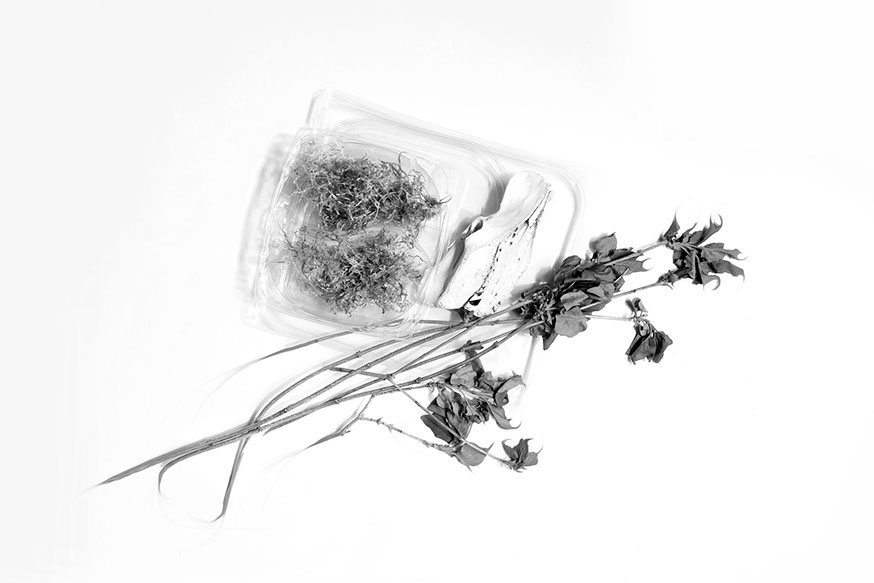 2021-2022 / fleurs et feuillages secs, barquettes plastiques usagées,