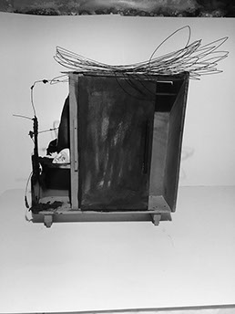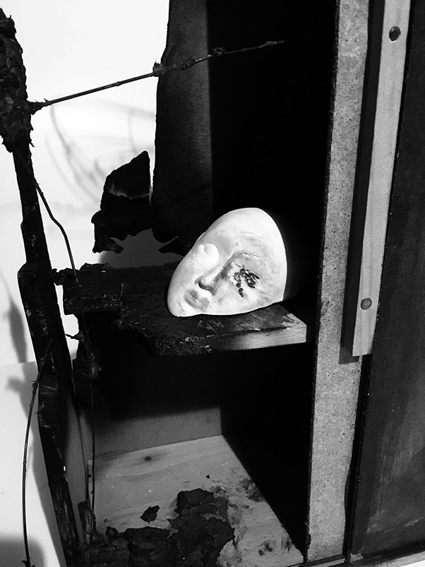 [ A travers des images qui semblent comme issues d’un passé, cartes rayées du Nord de la France, redessinées par le temps et les frontières anciennes, des vidéos, des dessins, des photographies, des boîtes, reliées entre elles par les fils de l’espace en mouvement. Partout les routes sont à la fois le lieu de circulation, le moyen même pour l’artiste de déplacer son œil, mais aussi le passage d’une désolation à un abandon, dans le cimetière des maisons abandonnées, des restaurants désertés, parfois même brûlés, et des industries en ruine. Au milieu de ces souvenirs figés, lentement décomposés, la sarabande des fantômes semble partout jaillir d’un détail insolite. F. Elkaïm ]
