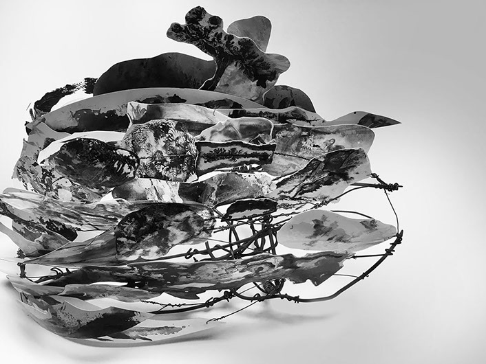 Mais parmi tout cela, parmi les maisons abandonnées à la végétation, et les toits calcinés et murs éventrés entrepris par les animaux, le cycle continue. Les histoires se racontent, se transforment et se reconstruisent autour de ces vestiges d’objets retrouvés à moitié brûlés, de ces murs noircis dont les morceaux qui subsistent en gardent la trace, de ces lignes de paysages qui droites, puis courbes, courent de lieu en lieu comme des lignes de vies.